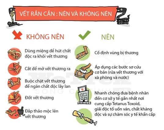 - Tuyệt đối không chích rạch vết cắn, không hút nọc bằng miệng