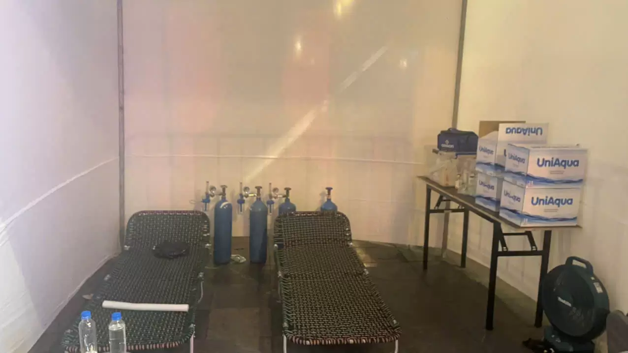 - Có tủ thuốc, bàn y tế, giường nằm, quạt mát, bình nước, thiết bị sơ cứu