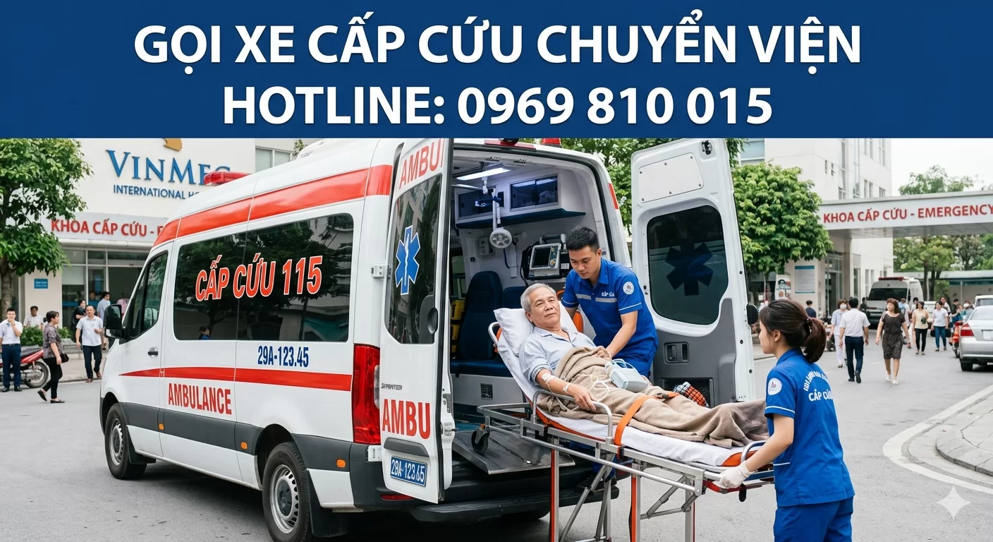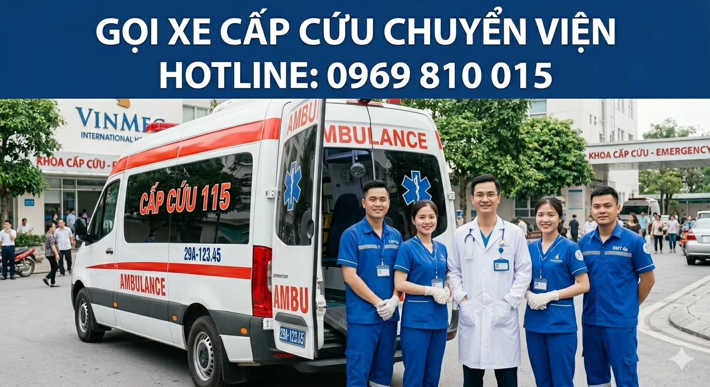 - Tiếp nhận thông tin (24/7): Bạn gọi đến Hotline 0969810015. Nhân viên tổng đài ghi nhận tình trạng bệnh nhân và địa điểm.