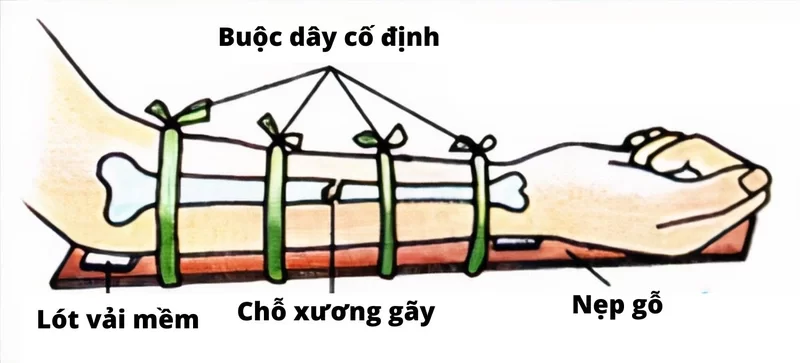- Cố định vị trí gãy bằng nẹp hoặc vật cứng