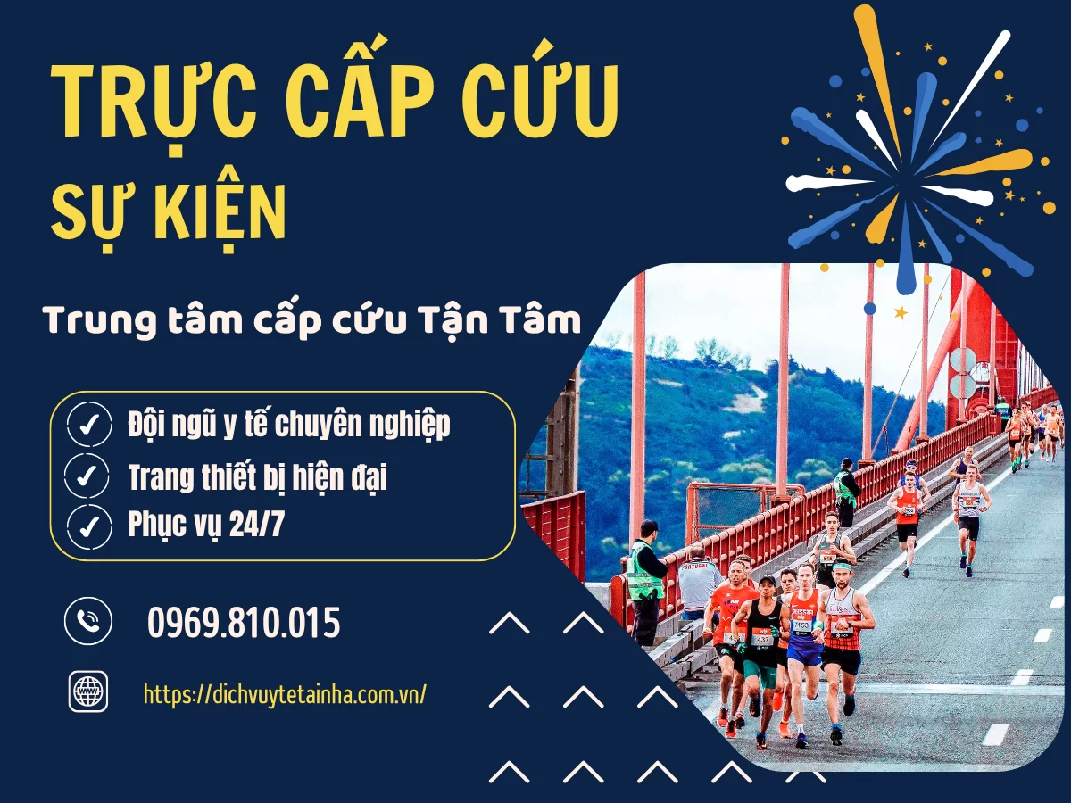👉 Trung tâm Y tế Tận Tâm có đội ngũ cả bác sĩ cấp cứu, điều dưỡng và kỹ thuật viên theo tiêu chuẩn BYT – bố trí theo đúng quy mô sự kiện.